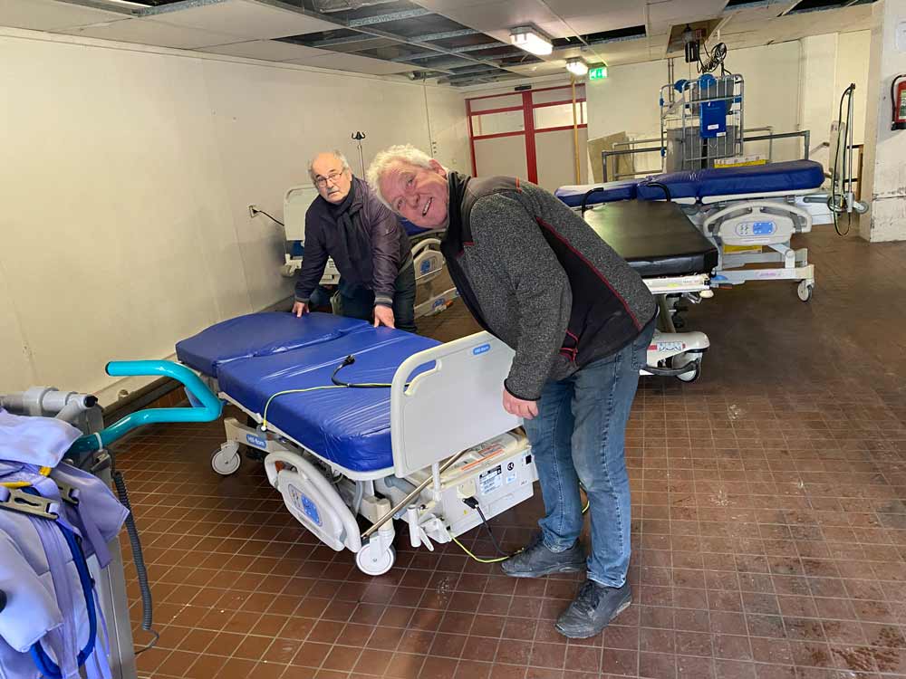 De loodsen in het “Martin Hakkert Hof” (Passewaaijse Hogeweg 1 te Tiel) staan vol. Daarom gaan we op dinsdag 13 januari weer een container laden.We beginnen om 12.00 uur met het klaarzetten van hulpgoederen. De container komt om 12.30 uur. Deze keer wordt de container met oa ziekenhuisbedden en speciale kraambedden geladen, zoals het er nu naar uitziet, bestemd voor het Academisch Ziekenhuis in Suriname. In Suriname kan men allerlei hulpgoederen gebruiken maar vooral medicijnen, rolstoelen, verband en )opknap) fietsen.