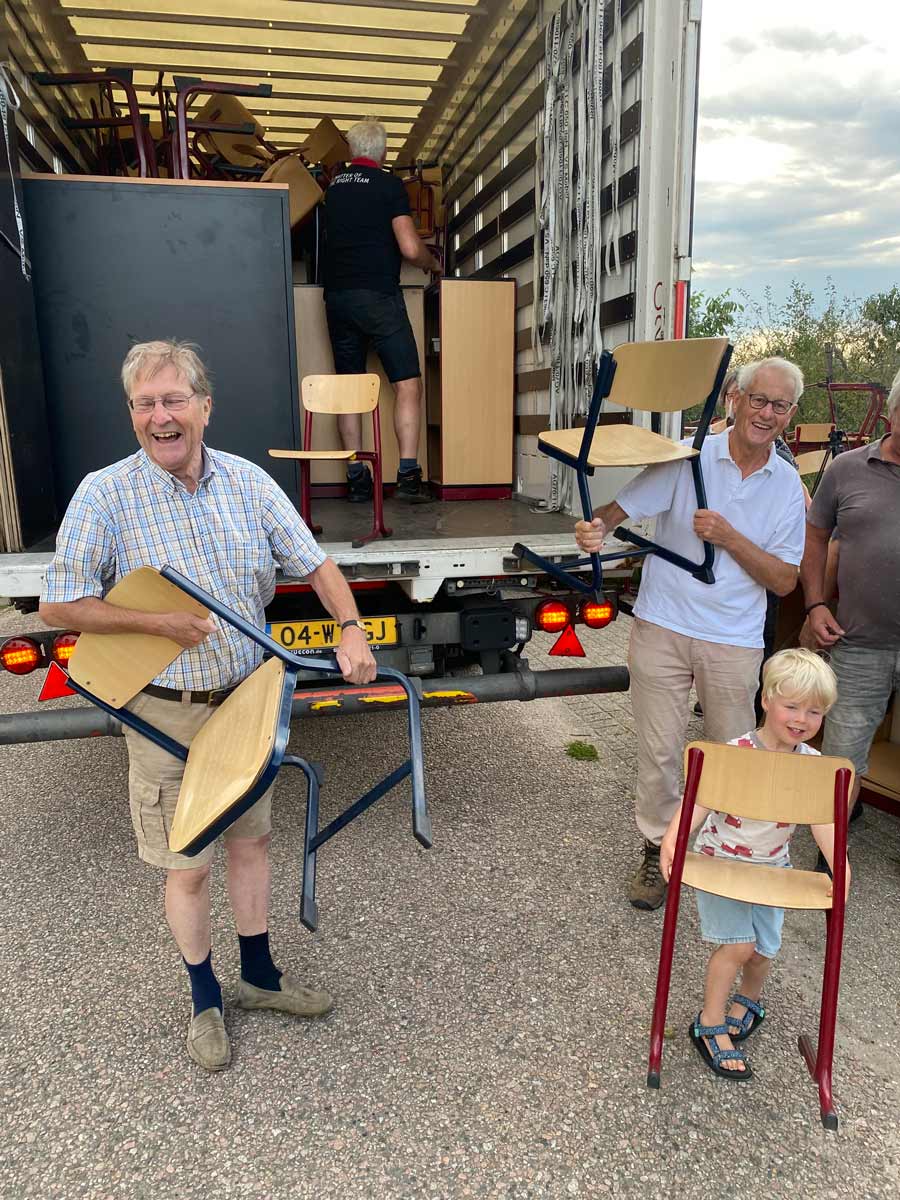 Het meubilair is -via de fa Reinders uit Oisterwijk- afkomstig van Basisschool De Regenboog uit Cuijk.