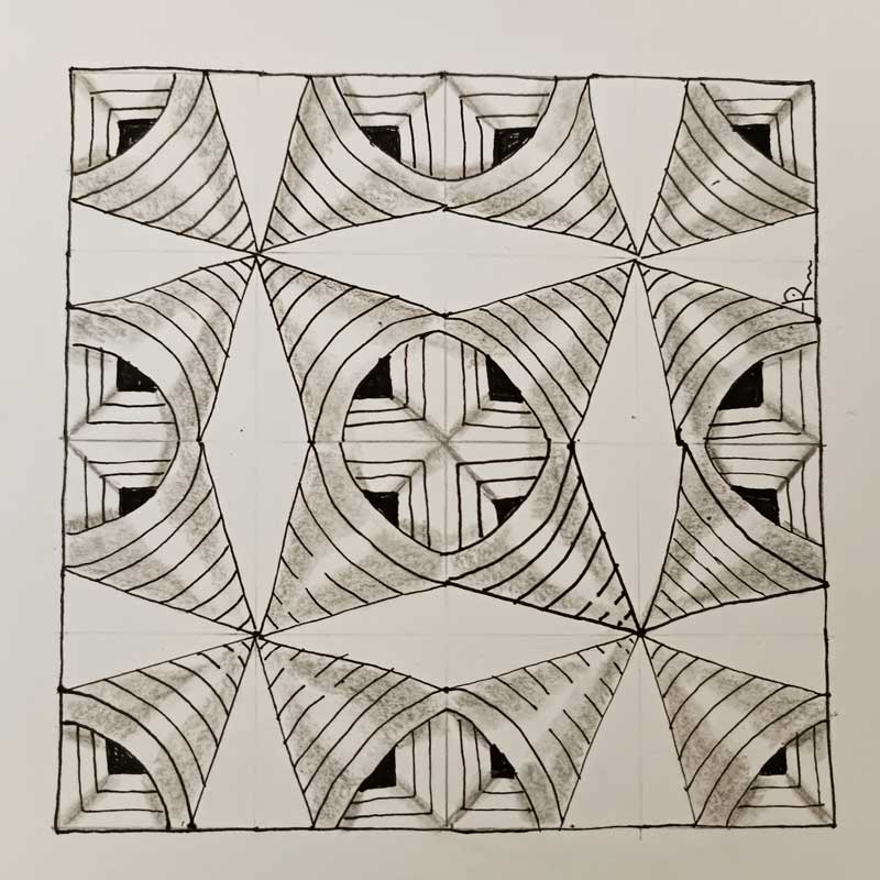 Met ZenTangle tekenen focus je op het tekenen van lijnen en patronen. Er zijn veel patronen, wel 3000. Keus te over en je kunt ook zelf patronen bedenken, of een basispatroon aanpassen naar je eigen idee. Door dit toe te passen en langzaam en met aandacht te tekenen creëer je iets moois.